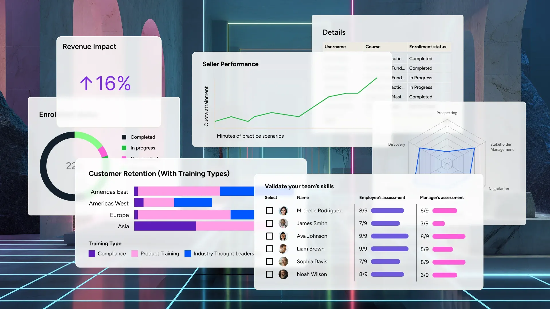 Learning outcomes continuously update skill profiles and guide what comes next. Readiness, mobility, and progress stay visible, measurable, and easy to act on as priorities shift.