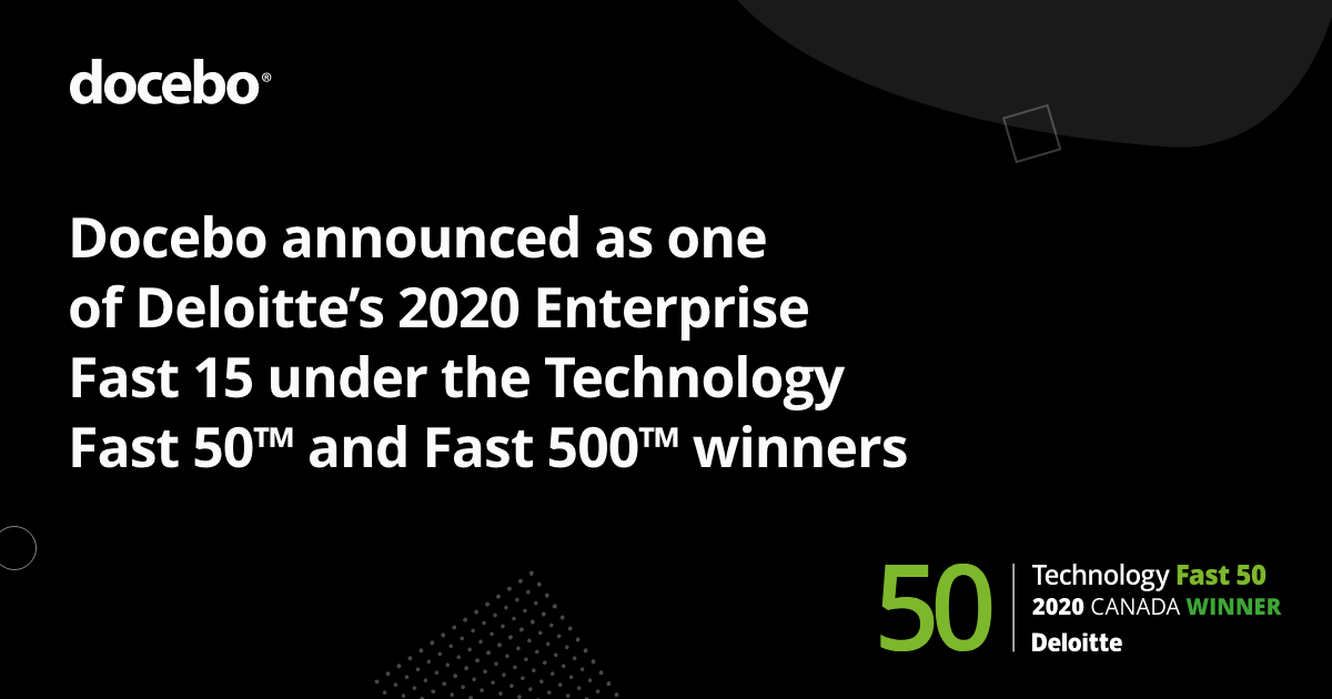 Docebo announced as one of Deloitte’s 2020 Enterprise Fast 15 under the Technology Fast 50™ and Fast 500™ winners