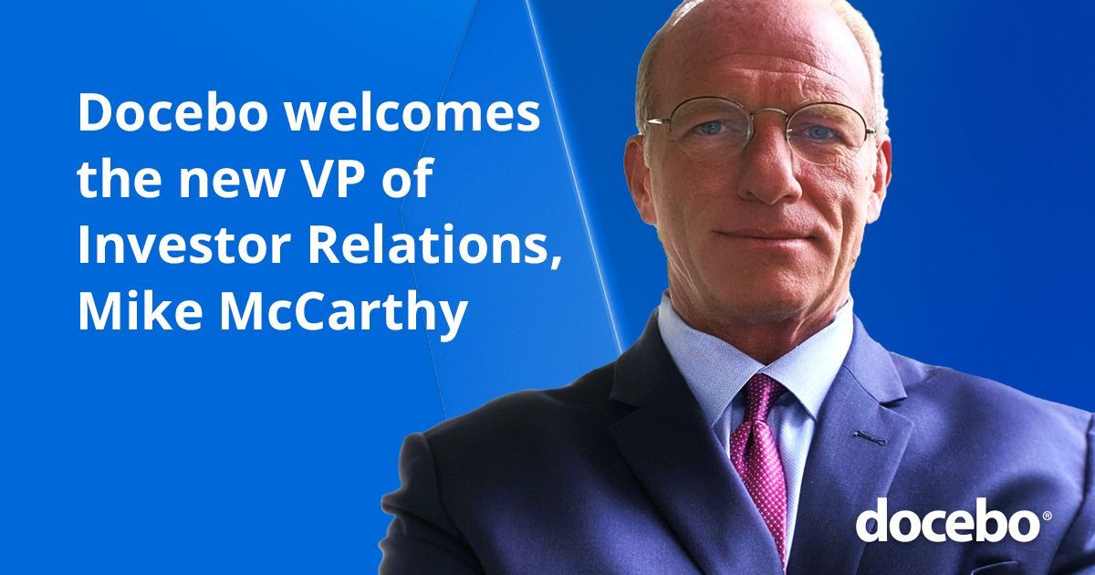 TORONTO — Docebo Inc. (NASDAQ:DCBO; TSX:DCBO) (“Docebo” or the “Company”), a leading artificial intelligence (AI)-powered learning suite provider, announced today that Mike McCarthy has joined the Company as its Vice President of Investor Relations.