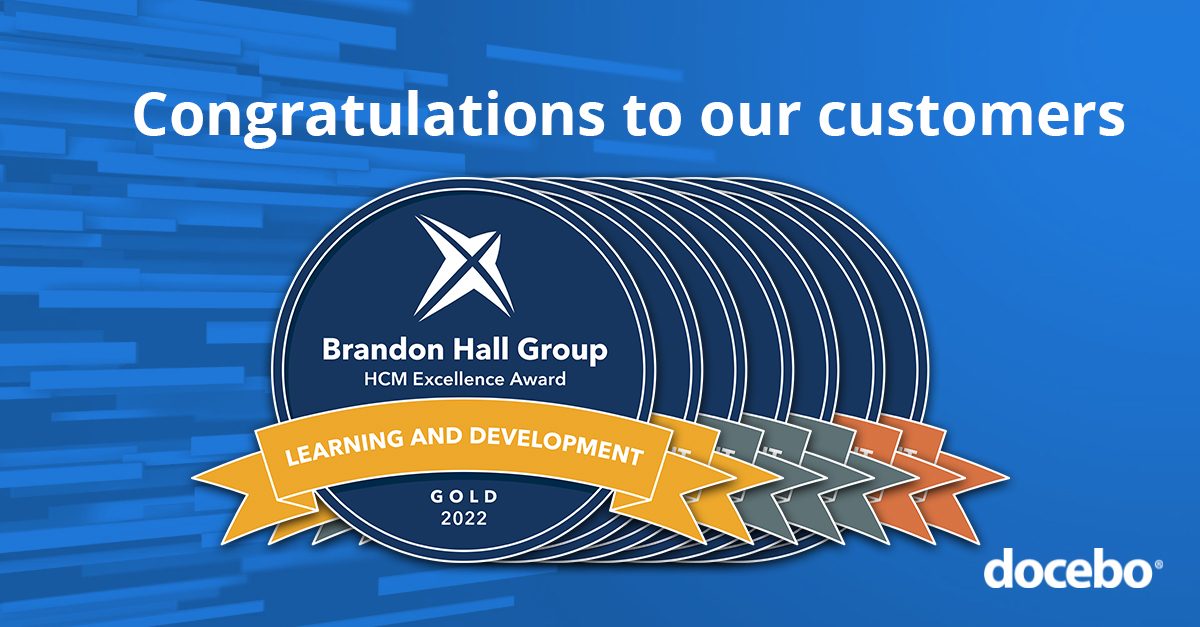 TORONTO, August 25, 2022 — Docebo Inc. (NASDAQ: DCBO; TSX: DCBO) (“Docebo” or the “Company”), a leading artificial intelligence (AI)-powered learning solutions provider, today announced the Company won seven coveted Brandon Hall Group Human Capital Management (HCM) Excellence awards including six medals in the Learning and Development category and one gold medal in the Sales Performance category.