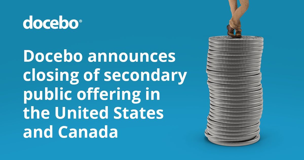 TORONTO–January 26, 2021– Docebo Inc. (“Docebo” or the “Company”) (TSX:DCBO; Nasdaq: DCBO) today announced the closing of its previously-announced marketed secondary public offering of common shares in the United States and Canada. The offering was for an aggregate of 2,315,281 common shares, comprised of 2,083,754 common shares offered by Intercap Equity Inc. (“Intercap”), 173,645 common shares offered by Claudio Erba (“Erba”) and 57,882 common shares offered by Alessio Artuffo (“Artuffo” and together with Intercap and Erba, the “Selling Shareholders”), including an aggregate of 301,993 common shares sold by the Selling Shareholders pursuant to the exercise in full by the underwriters of their over-allotment option. The common shares were offered and sold at a price of US$49.67 per share, for gross proceeds to the Selling Shareholders of approximately US$115.0 million.