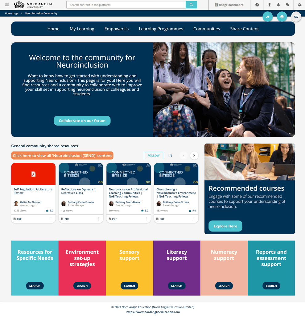 Introducing templated widgets that super admins could easily edit and maintain using clear documentation and training from GuyKat. This meant Nord Anglia Education’s team felt confident managing and customising the platform independently with the benefit of every widget having a consistent branding.