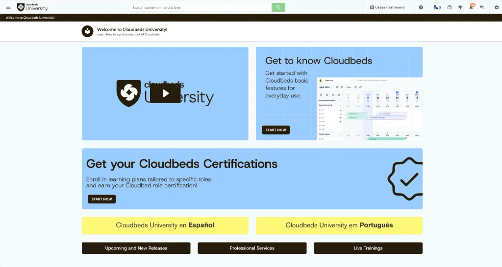 Now, different Cloudbeds teams can contribute learning content to CBU based on their own expertise and priorities while maintaining a smooth learner experience. CBU’s unified branding and automation create a seamless experience for end users, and learning content is centralized in a single, easy-to-access place.