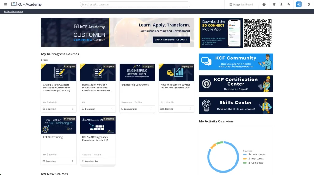 KCF’s purpose is to help manufacturers optimize their equipment and save money by eliminating unplanned downtime, waste, and unsafe conditions that can lead to workplace injuries. To that end, KCF tracks how much their customers engage with the learning platform, as well as how much customers save by using their products and services.