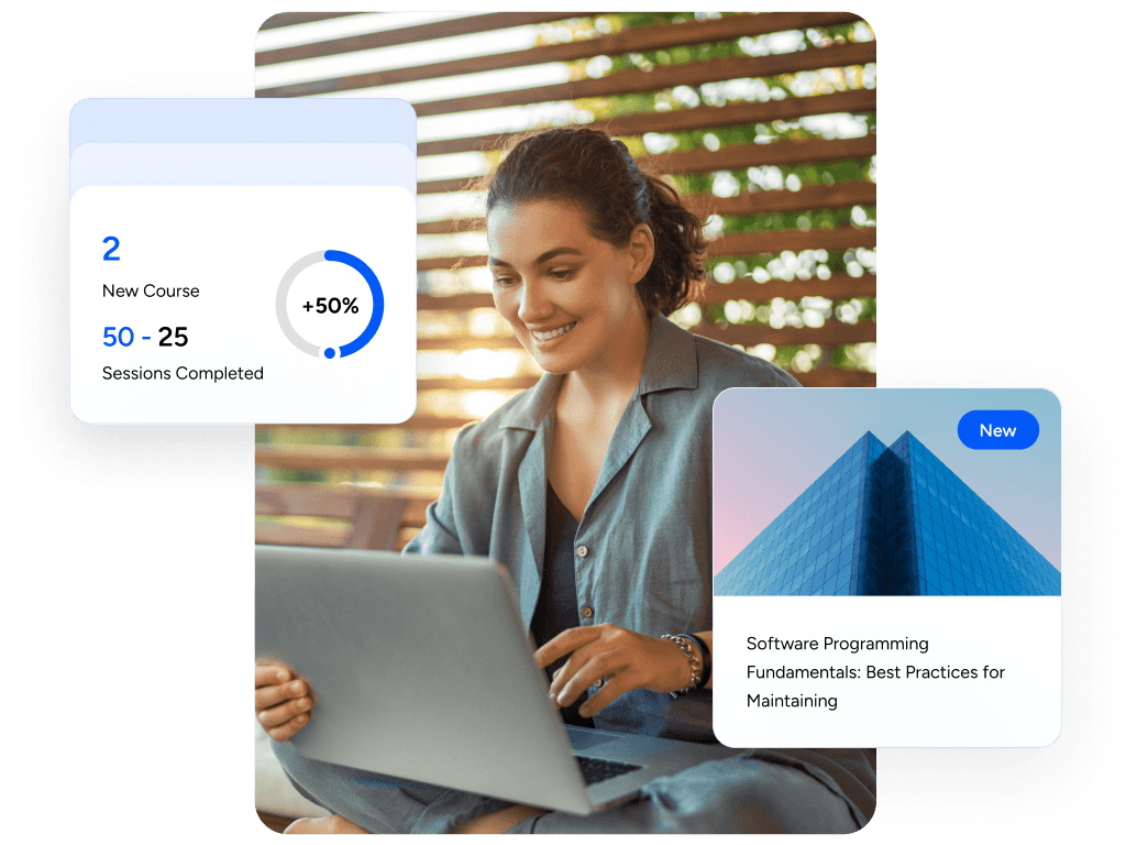 Gracias a la IA integrada (en lugar de añadida), puede agilizar los procesos con un clic, generar contenido personalizado en cuestión de segundos y eliminar las barreras que ralentizan el aprendizaje.