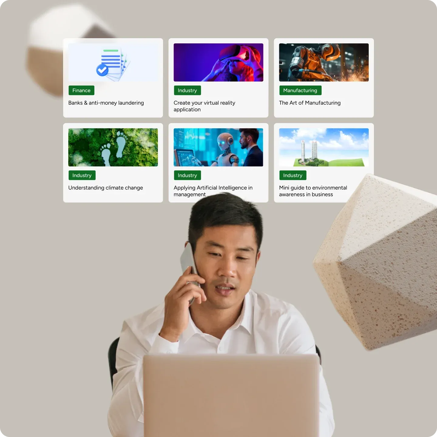 Lorsque votre secteur d’activité exige une expertise, une formation générique ne suffit pas. Edflex propose des playlists verticalisées, des jeux de rôle alimentés par l’IA et des contenus spécialisés dans plus de 35 langages.