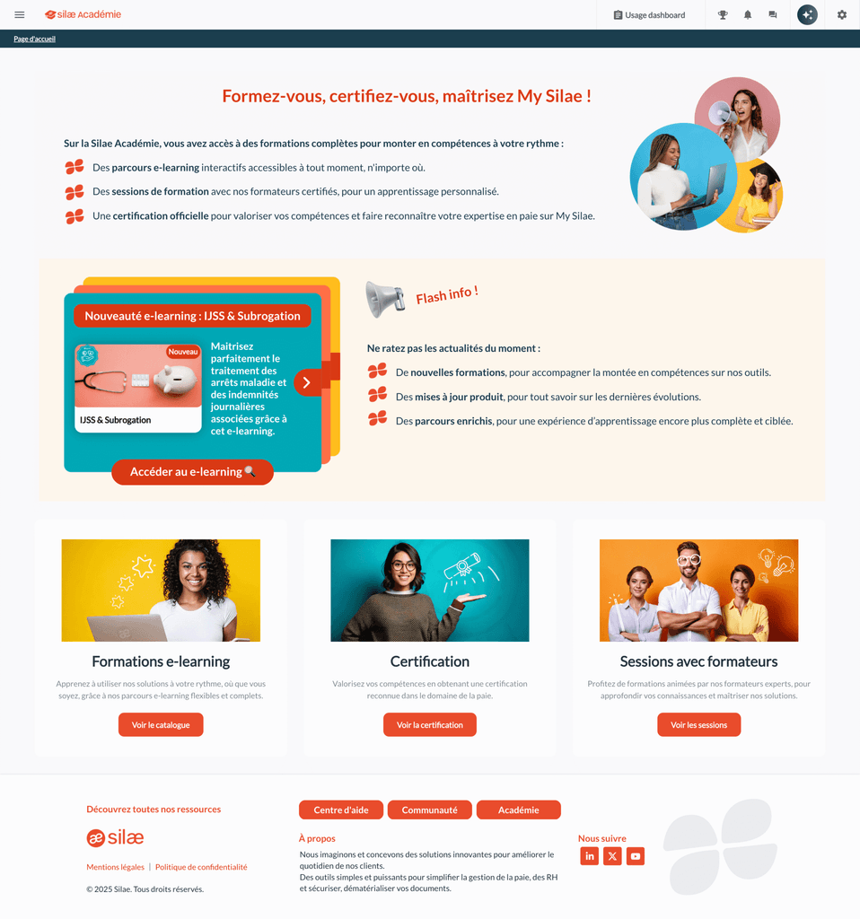 Le principal défi pour Silae était de concevoir un dispositif de formation capable de suivre une croissance rapide tout en restant simple à opérer. L’entreprise devait structurer une offre pédagogique complète, incluant des modules e-learning et des certifications, tout en garantissant la scalabilité du modèle pour soutenir son expansion, notamment à l’international. Il était impératif que la nouvelle solution s’intègre parfaitement à l’écosystème digital existant (SSO, Salesforce, Zendesk) pour offrir une expérience utilisateur unifiée. Le tout devait être réalisé dans un cadre budgétaire maîtrisé, sans dépasser l’enveloppe de la solution précédente, tout en gagnant en performance et en autonomie.