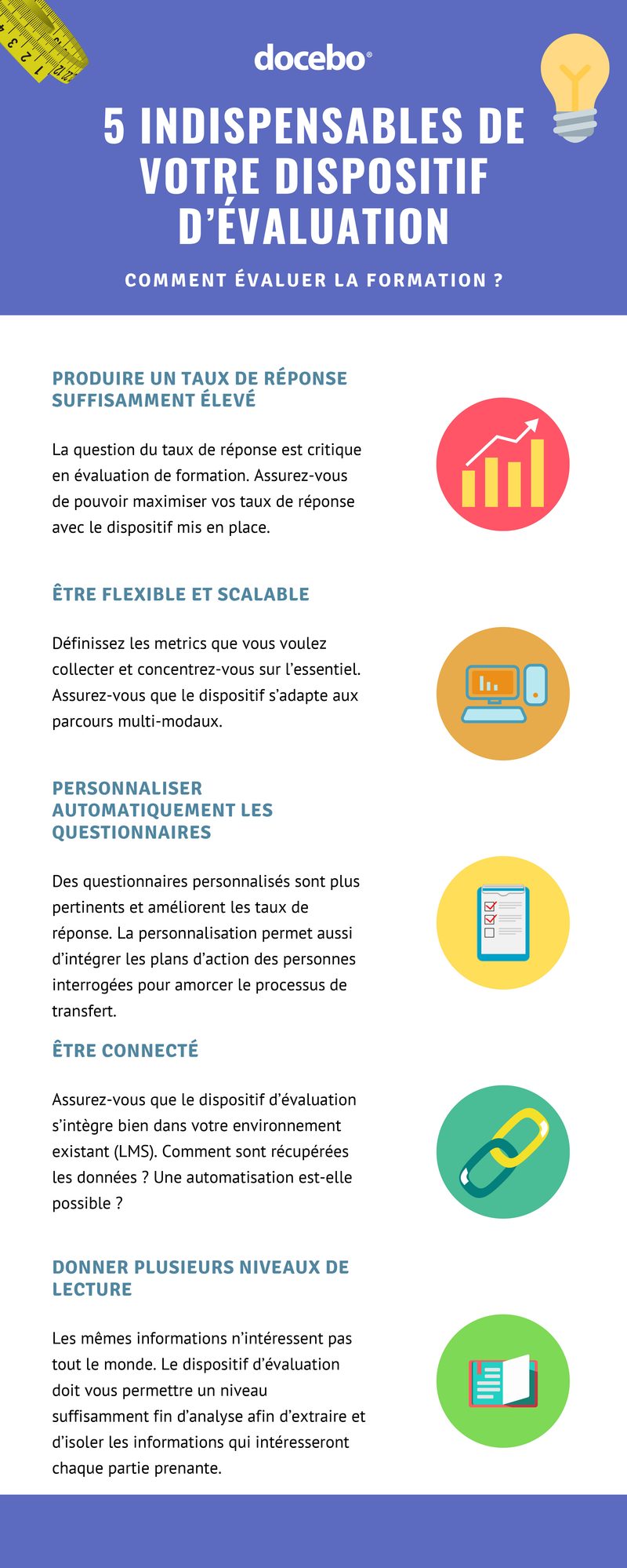 C’est pourquoi Docebo a choisi de présenter cette série « Comment évaluer la formation ? » qui reprend certains grands principes de manière très opérationnelle. Aujourd’hui dans l’épisode 3 : 5 indispensables de votre dispositif d’évaluation.