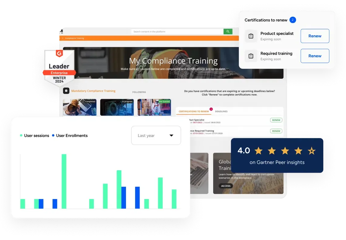 La plateforme learning Docebo simplifie le suivi de la conformité et des certifications en automatisant les inscriptions et le déploiement des cours, et en offrant de solides capacités de reporting et de suivi. Les administrateurs peuvent définir des règles d’inscription en fonction des branches et des groupes, rationaliser les processus d’affectation aux cours et s’assurer que les employés reçoivent les formations compliance les plus récentes. De plus, l’application de certification et de recyclage de la plateforme vous donne les moyens de créer et de gérer des programmes de certification avec des périodes de validité spécifiques et des workflows de renouvellement automatisés. Ainsi, votre personnel est toujours conforme aux normes de votre secteur. Les apprenants peuvent obtenir des certifications en suivant les bons cours, plans de formation ou activités de formation externes et la plateforme délivre les certifications automatiquement en fin de parcours. Les notifications automatisées alertent les utilisateurs sur les échéances de certification à venir, ce qui facilite les renouvellements dans les délais et le respect continu des normes de conformité.