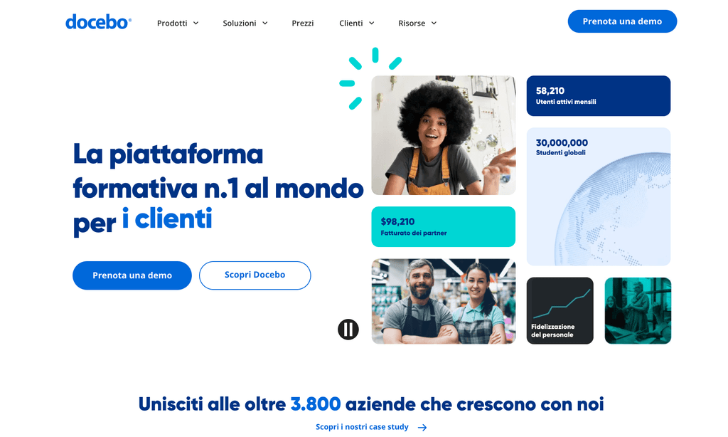 Docebo si adatta ad aziende di tutte le dimensioni e settori, tra cui finanza, sanità e vendita al dettaglio. Tuttavia, è particolarmente adatto alle organizzazioni con un numero elevato di dipendenti o a coloro che desiderano una piattaforma con ampie opzioni di personalizzazione.