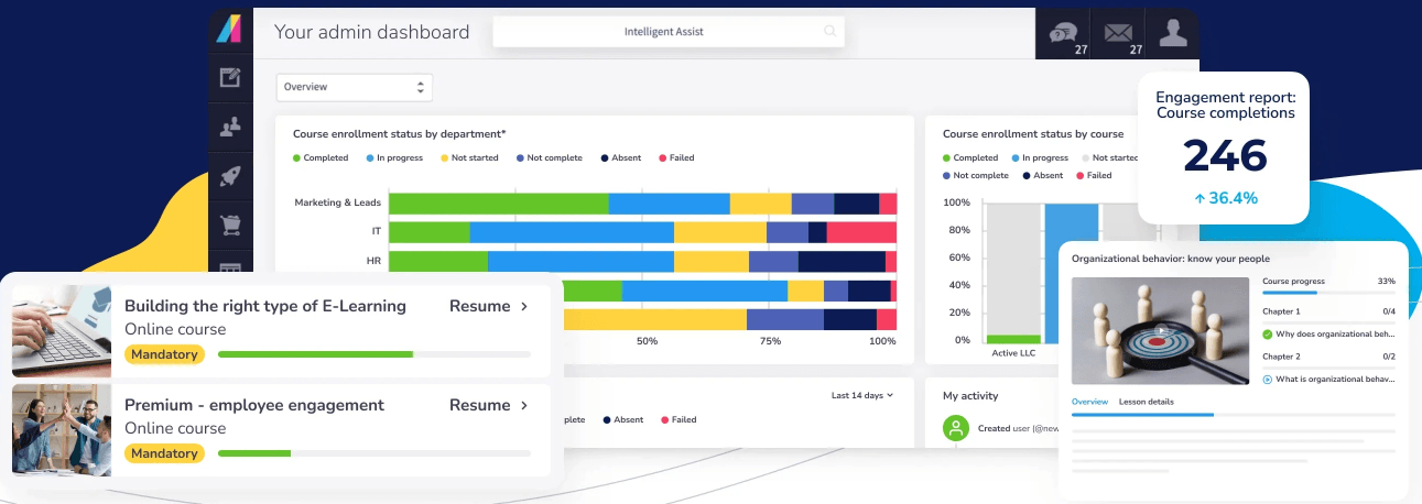 Modern LMS platforms are equipped with robust reporting and analytics to monitor course completion, quiz scores, and engagement levels, and allow you to make business-relevant comparisons. This real-time feedback enables organizations to continuously refine their training materials to better meet the evolving needs of enterprises.
