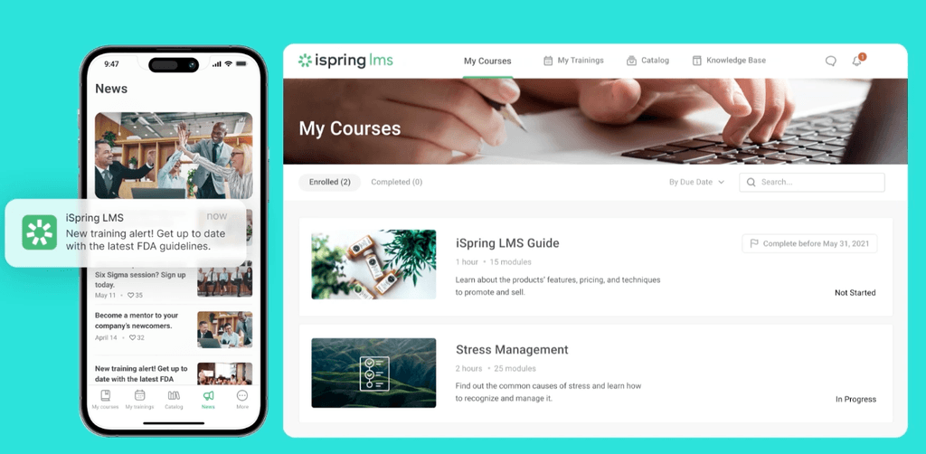 iSpring Learn is an LMS designed to support every stage of employee development from onboarding new hires to delivering ongoing professional training.