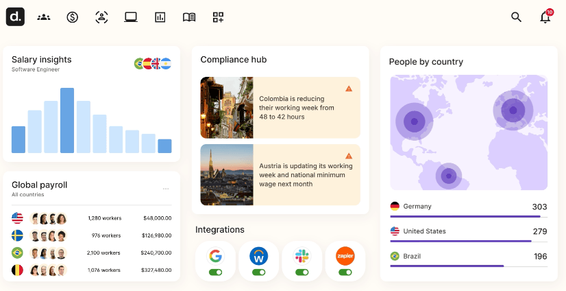 Best for: Global teams that need to simplify hiring, payroll, and compliance across multiple countries