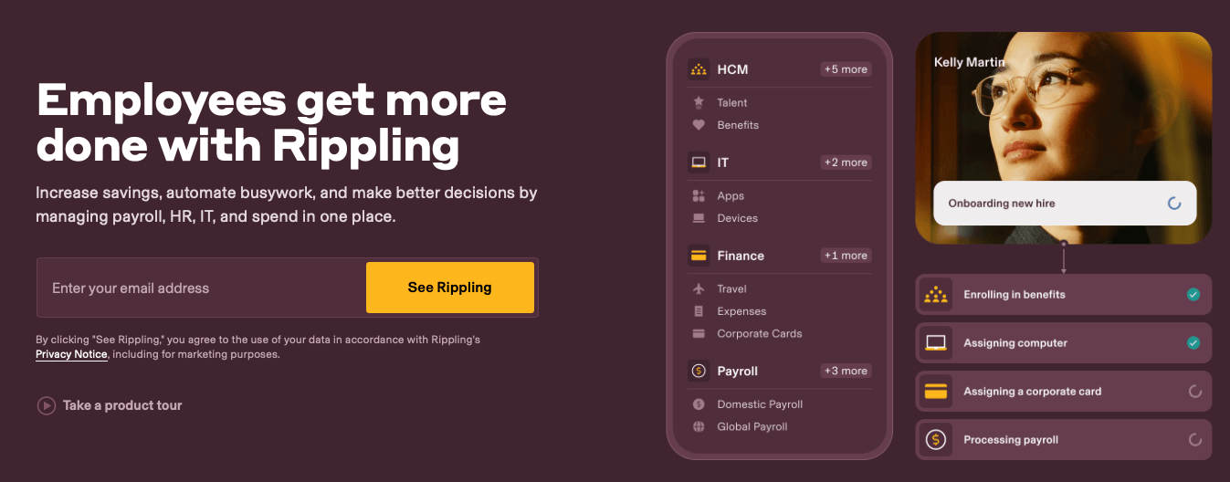 Rippling is a unified workforce platform that automates the entire employee lifecycle, from onboarding through offboarding, bringing together HR, IT, and payroll in one place.