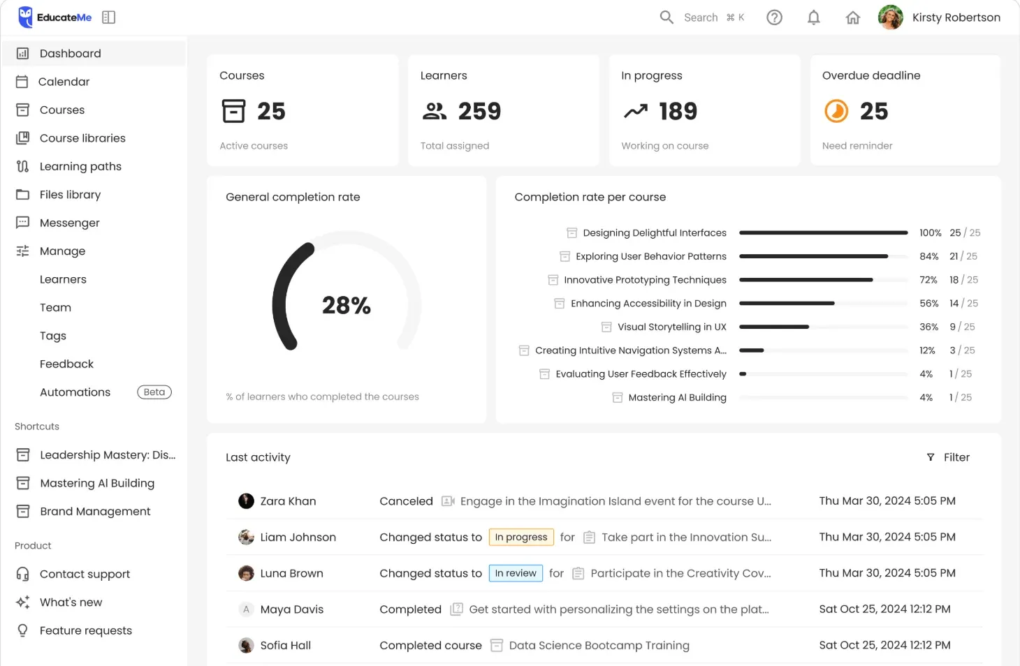 - Very user-friendly for both admins and learners.