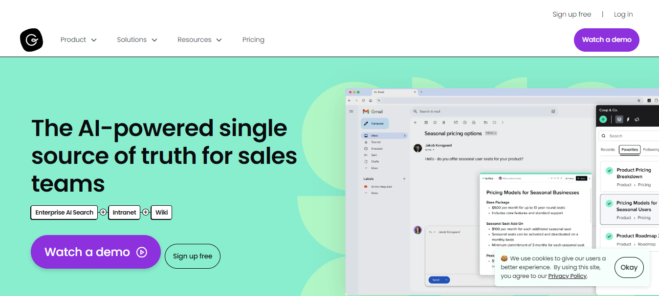 Access to updated, accurate information is essential for any sales team. A good sales enablement tool or platform will empower your reps with on-demand answers, and contextual, updated information directly in their workflow without the need to switch between multiple tools.