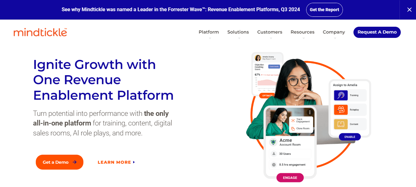 Mindtickle is a sales readiness platform founded in 2011 in San Francisco. It was created to help increase knowledge among sales teams with the help of online training, coaching, and role-play combined with a data-driven approach.