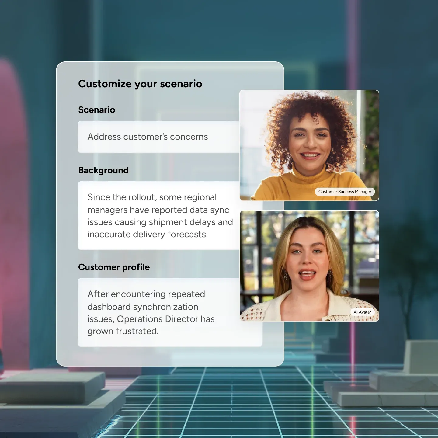 Yes. Docebo’s AIVC offers both pre-set scenario templates for quick deployment and convenience, as well as the flexibility to fully design your own simulations. This means you can start fast by leveraging ready-made role-play scenarios, or take full control to align every simulation with your organization’s challenges, tone, and goals. By customizing objectives, avatars, context, and conversation prompts, you can create tailored practice sessions that reflect your company’s training priorities—whether for sales, leadership, HR, or customer support.