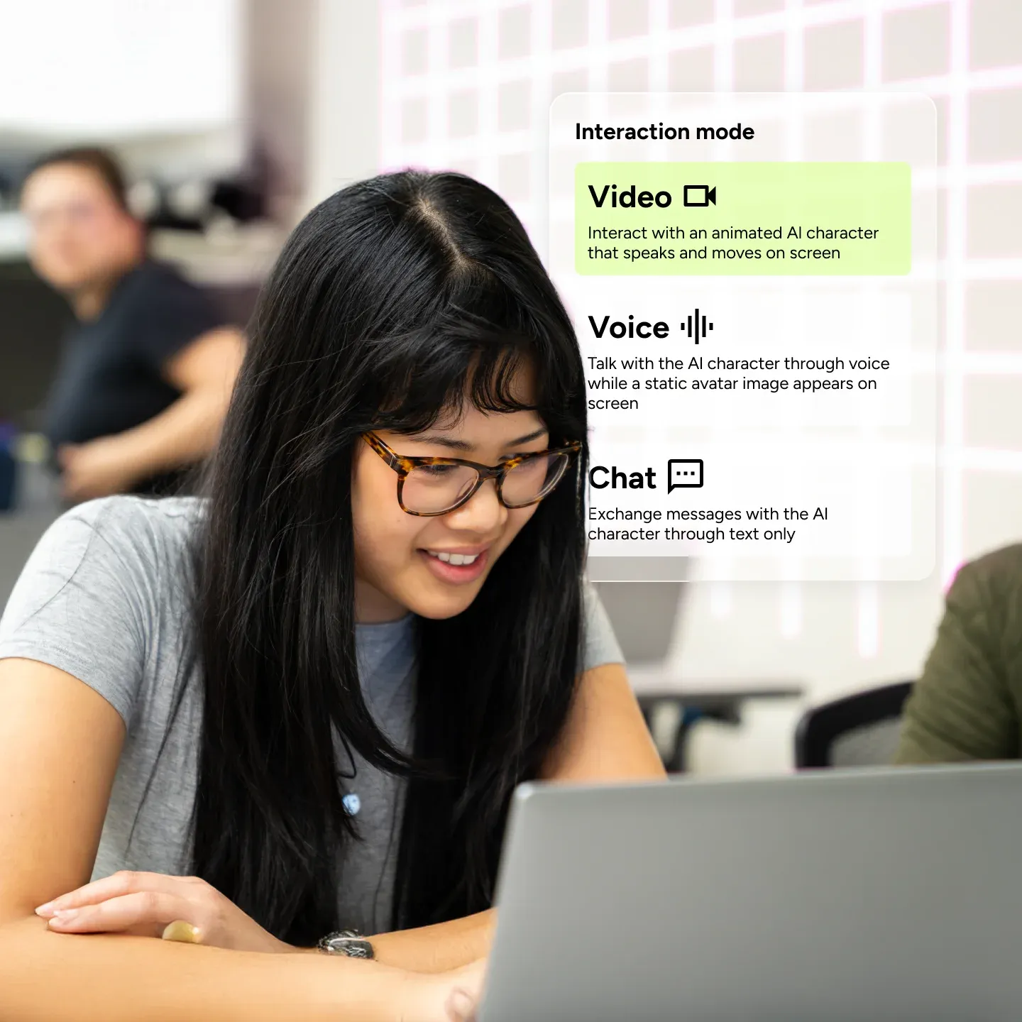 Train with voice, chat, or in full video