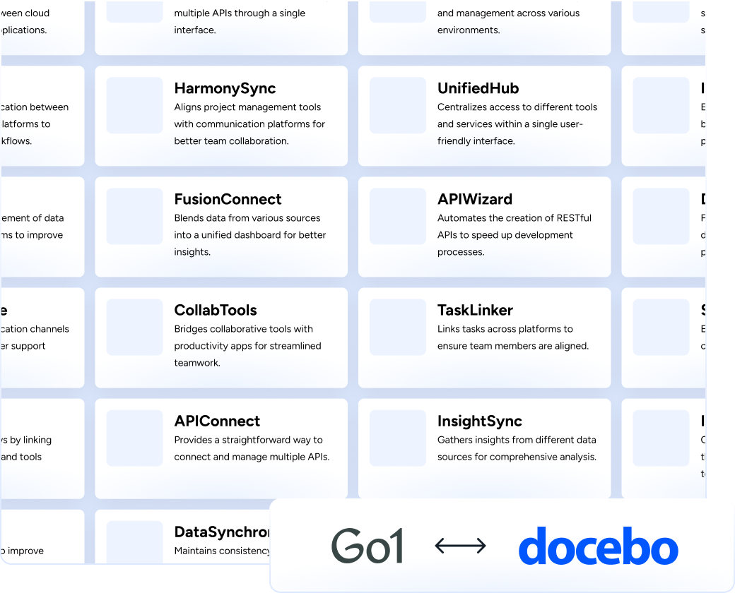 Tailor learning and development to every employee, regardless of their role, skill level, language or learning goal. Go1 seamlessly integrates with Docebo, ensuring easy access to learning content in the flow of work.