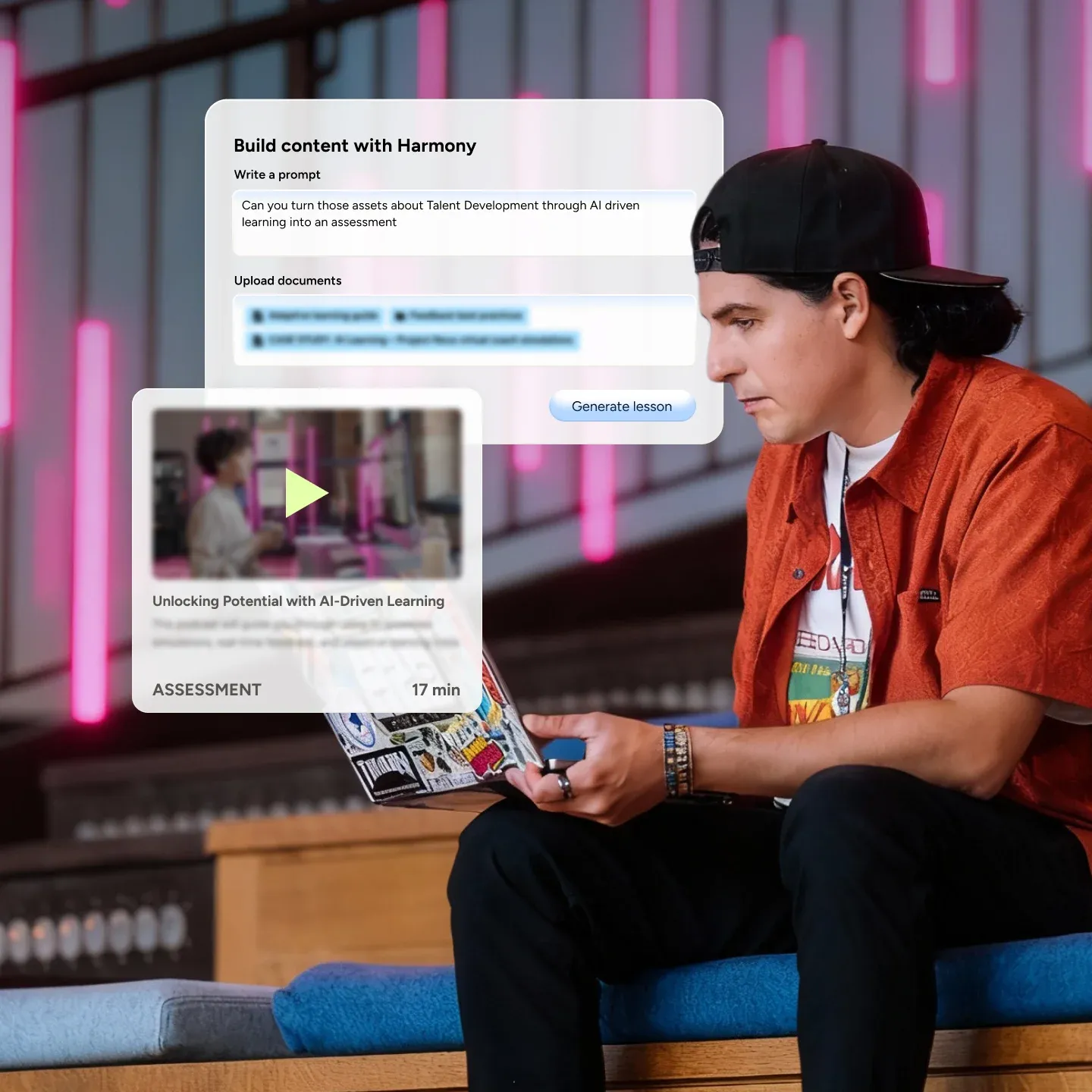 Generate engaging content over 70x faster (really). Create custom videos, assessments, and AI Virtual Coaching scenarios from existing assets or simple prompts.