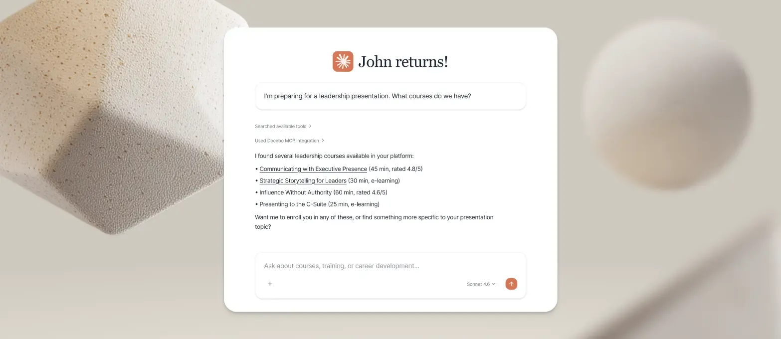 Their learning shouldn’t require a detour. Docebo MCP Server removes it.