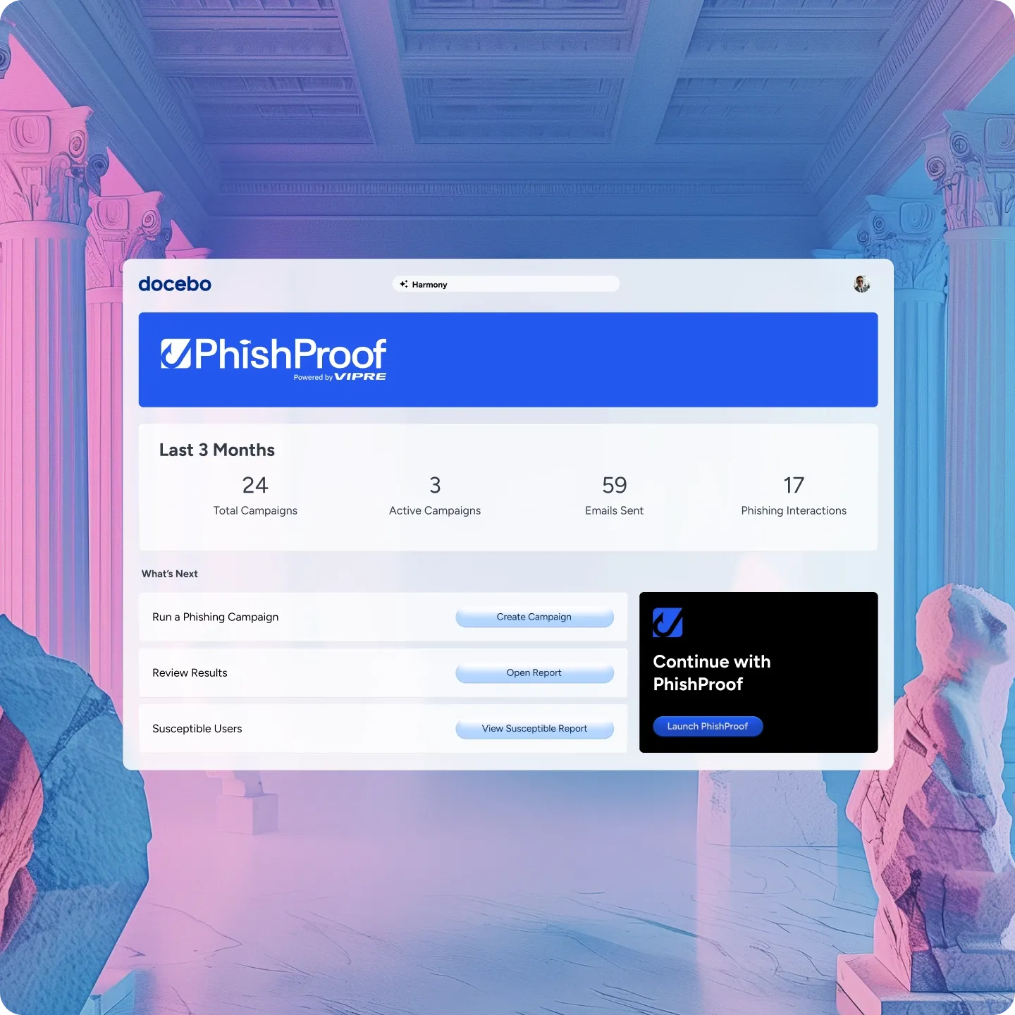 Most phishing simulation tools operate outside your LMS. Remediation is manual, reporting is fragmented and training is generic. PhishProof by VIPRE embeds phishing simulation directly inside Docebo. Risk signals automatically triggers personalized training,