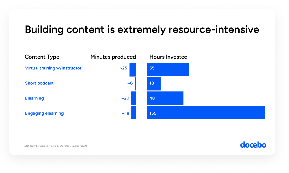 This is where learning technology can come in. Integrated content marketplaces bring courses from different providers under one roof (and directly into the LMS). And there’s a coming wave of generative AI designed to learn from business’ internal materials and output pedagogically-sound learning assets.